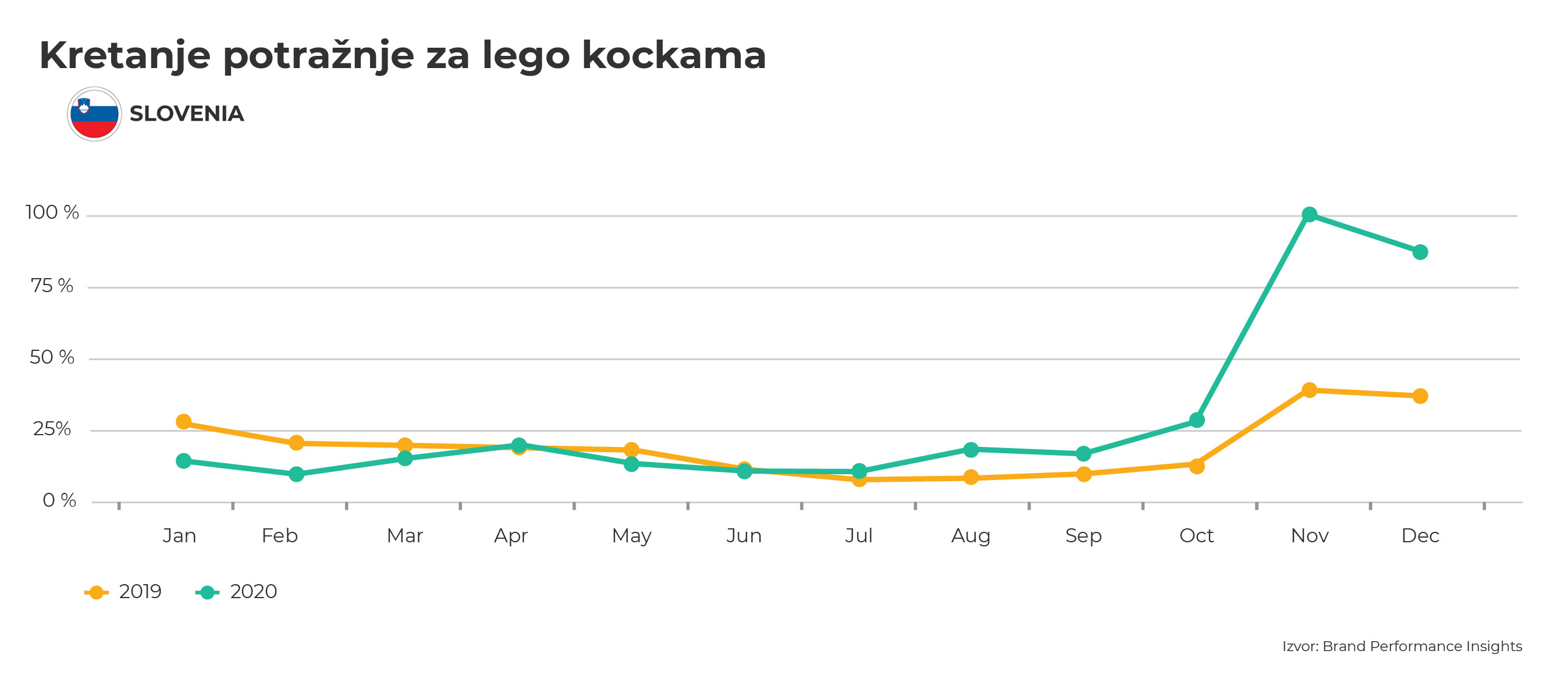 U Hrvatskoj je u studenom prošle godine zabilježen skok potražnje od 83 postotna boda (u usporedbi s 2019), a u Sloveniji se potražnja za LEGO kockama u studenom i prosincu prošle godine udvostručila u odnosu na isto razdoblje godine ranije – bila je za 102 postotna boda veća.